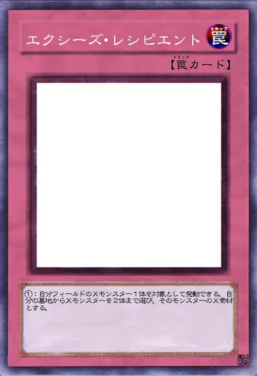 | ①:自分フィールドのXモンスター1体を対象として発動できる。自分の墓地からXモンスターを2体まで選び、そのモンスターのX素材とする。 | |||