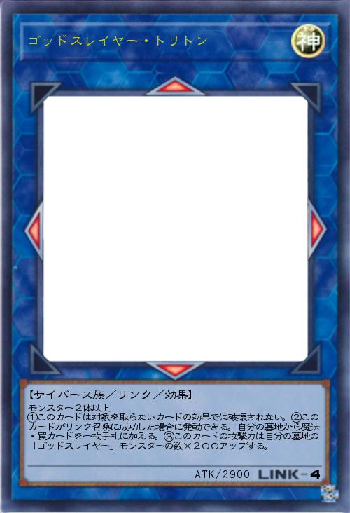 | モンスター2体以上 ①このカードは対象を取らないカードの効果では破壊されない。②このカードがリンク召喚に成功した場合に発動できる。自分の墓地から魔法・罠カードを一枚手札に加える。③このカードの攻撃力は自分の墓地の「ゴッドスレイヤー」モンスターの数×200アップする。 | |||