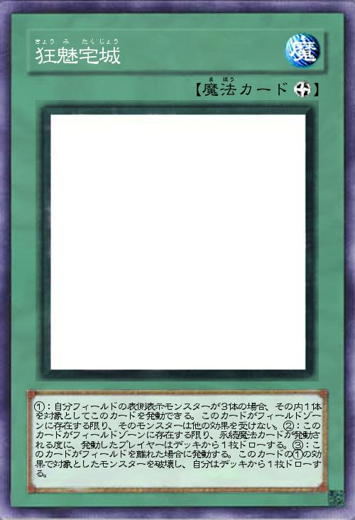 | ①:自分フィールドの表側表示モンスターが3体の場合、その内1体を対象としてこのカードを発動できる。このカードがフィールドゾーンに存在する限り、そのモンスターは他の効果を受けない。②:このカードがフィールドゾーンに存在する限り、永続魔法カードが発動される度に、発動したプレイヤーはデッキから1枚ドローする。③:このカードがフィールドを離れた場合に発動する。このカードの①の効果で対象としたモンスターを破壊し、自分はデッキから1枚ドローする。 | |||