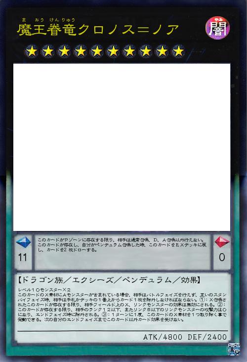 | レベル10モンスター×2 このカードのX素材にAモンスターが含まれている場合、相手はバトルフェイズを行えず、互いのスタンバイフェイズ時、相手は手札かデッキの1番上からカード1枚を除外しなければならない。①:X召喚されたこのカードが存在する限り、相手フィールド上のX、リンクモンスターの効果は無効にされる。②:このカードが存在する限り、相手のランク12以下、またリンク5以下のリンクモンスターの攻撃力は0になり、エンドフェイズ時に除外される。③:1ターンに1度、このカードのX素材を1つ取り除く事で発動できる。次の自分のエンドフェイズまでこのカード以外カード効果を受けない。 | |||