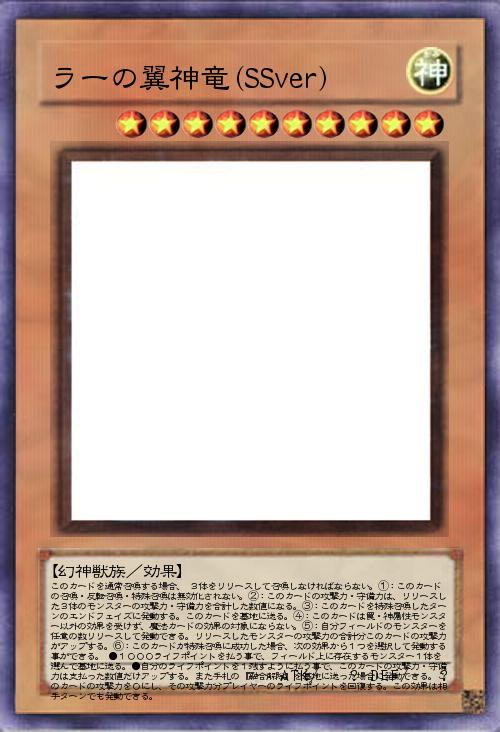 「私がこのサイトで投稿しているSS、「新遊戯王デュエルモンスターズ 紅い瞳の少女」で登場させているラーの翼神竜のテキストです。多分限界まで再現したらこんな効果なのではないでしょうか?