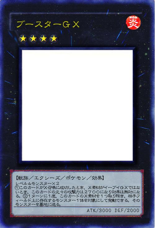 | レベル4モンスター×2 ①このカードがX召喚に成功したとき、X素材がイーブイGXではないとき、このカードの元々の攻撃力は2700になり効果は無効になる。②1ターンに1度、このカードのX素材を1つ取り除き、相手フィールド上に存在するモンスター1体を対象にして発動できる。そのモンスターを墓地に送る。 | |||