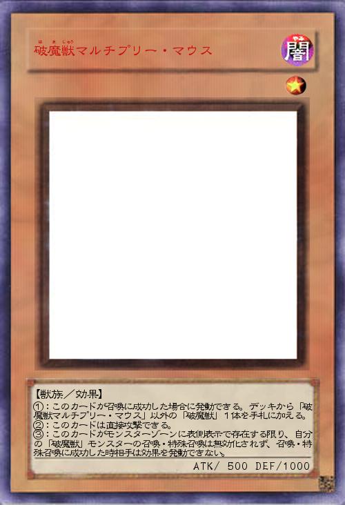| ①:このカードが召喚に成功した場合に発動できる。デッキから「破魔獣マルチプリー・マウス」以外の「破魔獣」1体を手札に加える。 ②:このカードは直接攻撃できる。 ③:このカードがモンスターゾーンに表側表示で存在する限り、自分の「破魔獣」モンスターの召喚・特殊召喚は無効化されず、召喚・特殊召喚に成功した時相手は効果を発動できない。 | |||
