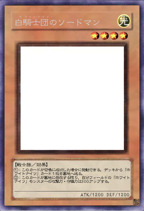 | ①:このカードが召喚に成功した場合に発動できる。デッキから「ホワイトナイツ」カード1枚を墓地へ送る。 ②:このカードが墓地に存在する限り、自分フィールドの「ホワイトナイツ」モンスターの攻撃力・守備力は300アップする。 | |||