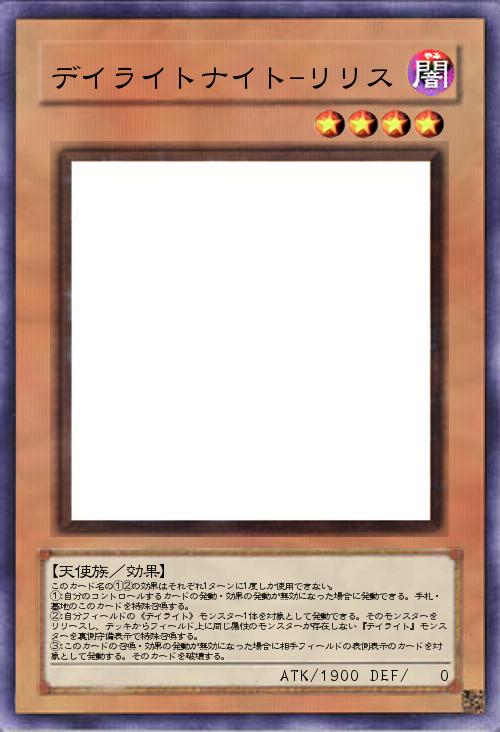 | このカード名の①②の効果はそれぞれ1ターンに1度しか使用できない。 ①:自分のコントロールするカードの発動・効果の発動が無効になった場合に発動できる。手札・墓地のこのカードを特殊召喚する。 ②:自分フィールドの《デイライト》モンスター1体を対象として発動できる。そのモンスターをリリースし、デッキからフィールド上に同じ属性のモンスターが存在しない『デイライト』モンスターを裏側守備表示で特殊召喚する。 ③:このカードの召喚・効果の発動が無効になった場合に相手フィールドの表側表示のカードを対象として発動する。そのカードを破壊する。 | |||