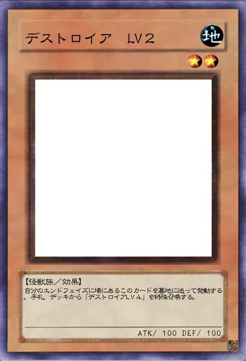 | 自分のエンドフェイズに場にあるこのカードを墓地に送って発動する。手札、デッキから「デストロイアLV4」を特殊召喚する。 | |||