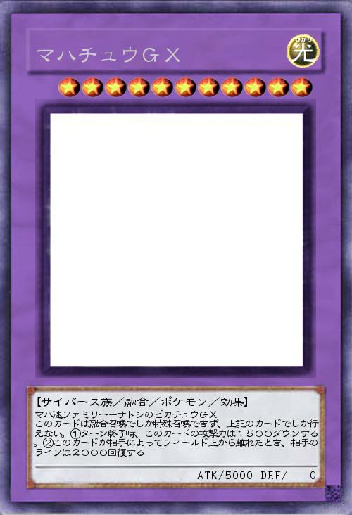 | マハ速ファミリー+サトシのピカチュウGX このカードは融合召喚でしか特殊召喚できず、上記のカードでしか行えない。①ターン終了時、このカードの攻撃力は1500ダウンする。②このカードが相手によってフィールド上から離れたとき、相手のライフは2000回復する | |||