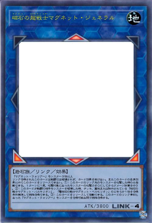 | 「マグネット・ウォリアー」モンスター3体以上 リンク召喚されたこのカードは戦闘では破壊されず、カード効果を受けない。またこのカードの自身効果以外でこのカードをリリースできない。①:このカードのリンク先のモンスターを攻撃した時のみ発動できる。1ターンに1度、攻撃対象になったモンスターの攻撃力を0にしてからダメージ計算を行う。②:このカードが戦闘で相手モンスターを破壊した時、デッキ、墓地または除外されている「磁石の戦士マグネット・バルキリオン」、「電磁石の戦士マグネット・ベルセリオン」のどちらか1体を召喚条件無視して特殊召喚できる。③:このカードをリリースして発動できる。このカードのリンク素材となった「マグネット・ウォリアー」モンスターを召喚可能な限り特殊召喚する。 | |||