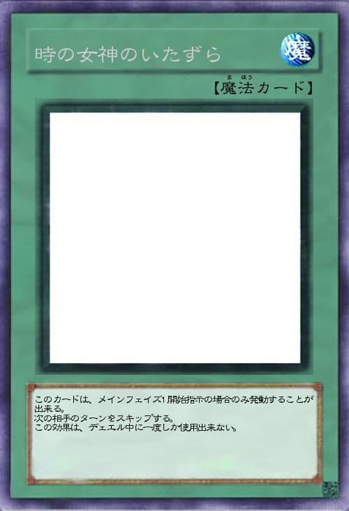 | このカードは、メインフェイズ1開始指示の場合のみ発動することが出来る。 次の相手のターンをスキップする。 この効果は、デェエル中に一度しか使用出来ない。 | |||