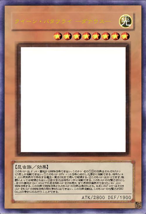 | このモンスタ-は,デッキ・墓地から特殊召喚できない.このカ-ド名の①③の効果はそれぞれ1タ-ンに1度しか発動できない.①このモンスタ-がアドバンス召喚に成功した場合に発動できる.相手フィ-ルド上に表側表示で存在する魔法・罠を2枚まで選んで破壊する.②このモンスタ-はリリ-スできず,戦闘によっては破壊されない.③自分または相手タ-ン中に発動できる.このモンスタ-の攻撃力を0にし,自分の墓地からレベル4以下の昆虫族モンスタ-を3体選び,全て表側守備表示で自分フィ-ルド上に特殊召喚する.この効果で特殊召喚されたモンスタ-の効果は無効化され,お互いのプレイヤ-はそのモンスタ-をモンスタ-の特殊召喚の際の素材にはできない.この効果発動は,このモンスタ-の攻撃力が2800以上の場合にのみ行うことができる. | |||
