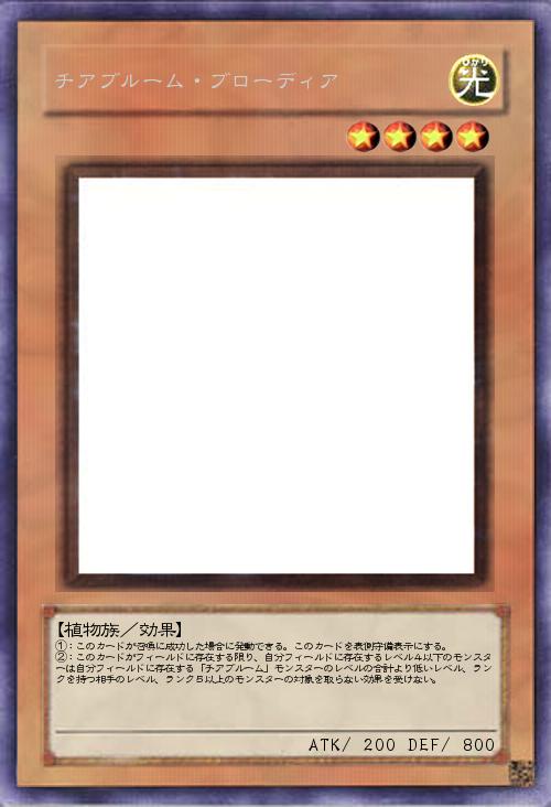 | ①:このカードが召喚に成功した場合に発動できる。このカードを表側守備表示にする。 ②:このカードがフィールドに存在する限り、自分フィールドに存在するレベル4以下のモンスターは自分フィールドに存在する「チアブルーム」モンスターのレベルの合計より低いレベル、ランクを持つ相手のレベル、ランク5以上のモンスターの対象を取らない効果を受けない。 | |||
