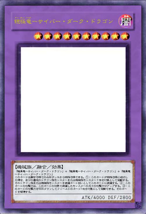 「サイバーダークの新しいモンスター考えてみました。サイバーダークはよくOcgでお世話になってます。サイバーダーククローの効果を使い墓地にサイバーダークドラゴン3体を並べサイバネテックフュージョンサポートからのパワーボンドで攻撃力8000の化け物誕生。装備カードを身代わりにする効果を消した代わりに破壊効果を追加してみました。」(2018-12-14 23:39)