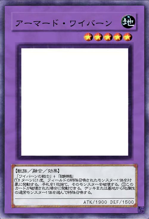「城之内の使用した下級モンスター「ワイバーンの戦士」と「鎧蜥蜴」を融合したカードです。簡易融合にも対応しており、除去かリクルートを選べます。」(2018-12-15 14:49)