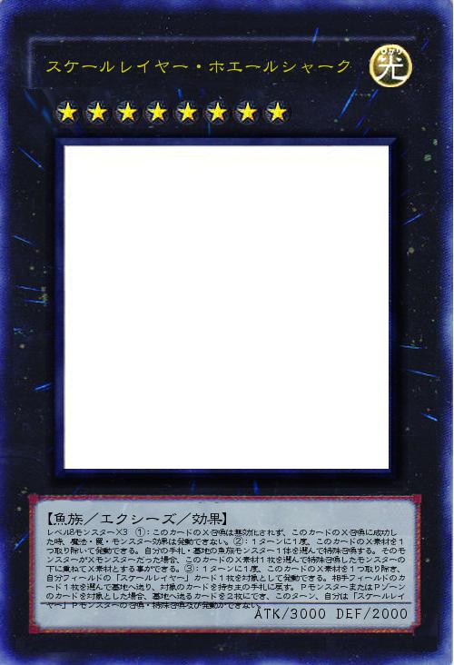 | レベル8モンスター×3 ①:このカードのX召喚は無効化されず、このカードのX召喚に成功した時、魔法・罠・モンスター効果は発動できない。②:1ターンに1度、このカードのX素材を1つ取り除いて発動できる。自分の手札・墓地の魚族モンスター1体を選んで特殊召喚する。そのモンスターがXモンスターだった場合、このカードのX素材1枚を選んで特殊召喚したモンスターの下に重ねてX素材とする事ができる。③:1ターンに1度、このカードのX素材を1つ取り除き、自分フィールドの「スケールレイヤー」カード1枚を対象として発動できる。相手フィールドのカード1枚を選んで墓地へ送り、対象のカードを持ち主の手札に戻す。PモンスターまたはPゾーンのカードを対象とした場合、墓地へ送るカードを2枚にでき、このターン、自分は「スケールレイヤー」Pモンスターの召喚・特殊召喚及び発動ができない。 | |||