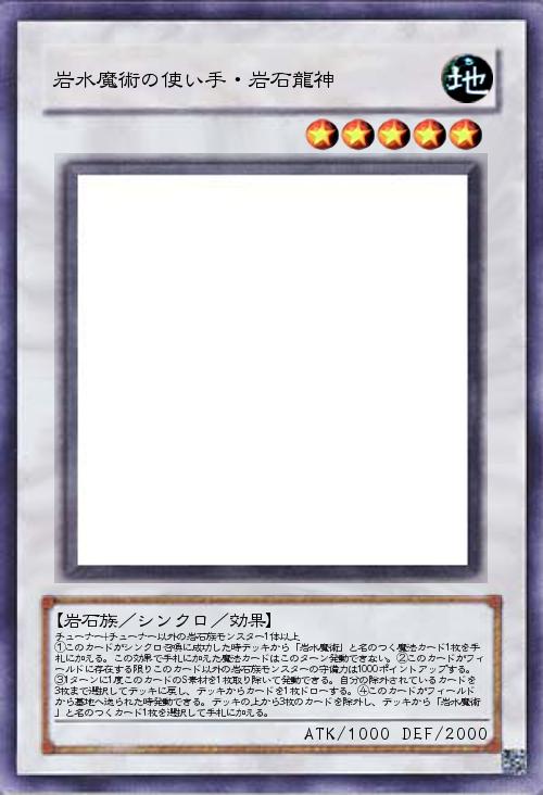 | チューナー+チューナー以外の岩石族モンスター1体以上 ①このカードがシンクロ召喚に成功した時デッキから「岩水魔術」と名のつく魔法カード1枚を手札に加える。この効果で手札に加えた魔法カードはこのターン発動できない。②このカードがフィールドに存在する限りこのカード以外の岩石族モンスターの守備力は1000ポイントアップする。③1ターンに1度このカードのS素材を1枚取り除いて発動できる。自分の除外されているカードを3枚まで選択してデッキに戻し、デッキからカードを1枚ドローする。④このカードがフィールドから墓地へ送られた時発動できる。デッキの上から3枚のカードを除外し、デッキから「岩水魔術」と名のつくカード1枚を選択して手札に加える。 | |||