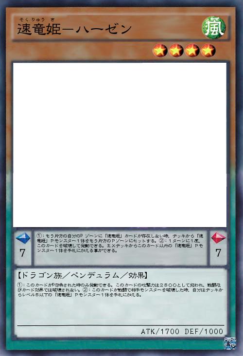 | ①:このカードがP召喚された時のみ発動できる。このカードの攻撃力は2500として扱われ、戦闘及びカード効果では破壊されない。②:このカードが戦闘で相手モンスターを破壊した時、自分はデッキからレベル5以下の「速竜姫」Pモンスター1体を手札に加える。 | |||