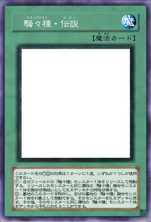 | このカード名の①②の効果は1ターンに1度、いずれか1つしか使用できない。 ①:自分フィールドの「騒々種」モンスター1体をリリースして発動する。リリースしたモンスターと同じ属性の「騒々種」融合モンスター1体を融合召喚扱いとしてEXデッキから特殊召喚する。 ②:墓地のこのカードを除外し、自分の墓地の「騒々種」融合モンスター1体を対象として発動できる。そのモンスターをEXデッキに戻す。その後、そのモンスターと同じ属性の「騒々種」モンスター1体をデッキから手札に加えることができる。 | |||