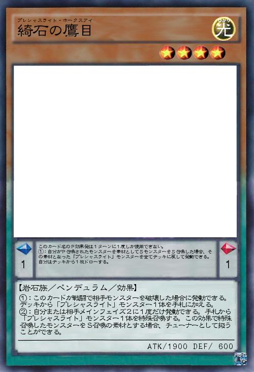 P効果は、P召喚モンスターをS素材にした場合にS素材になったプレシャスライトをデッキに戻すことでドローする効果。プレシャスライト以外のモンスターを素材にしてもいいんですが、戻す必要があるので1体は素材にする必要があります。とはいえプレシャスライトじゃない方がP召喚されていればP召喚したモンスターでなくてもいいんですが。」(2019-01-01 22:21)