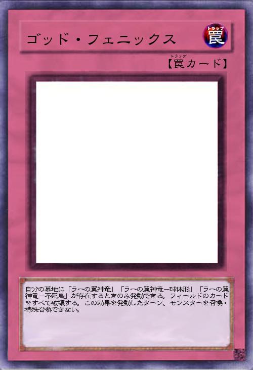 「ゴッド・フェニックスを罠カードにしてみました。三種類のラーの翼神竜がそろっていることを発動条件に全体除去を行うカードです。」(2019-01-04 21:16)