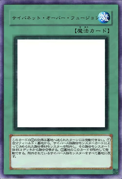 | このカードの②の効果は墓地へ送られたターンには発動できない。①自分フィールド・墓地から、サイバース族融合モンスターカードによって決められた融合素材モンスターを除外し、その融合モンスター1体をEXデッキから融合召喚する。②墓地のこのカードを除外して発動できる。除外されているサイバース族モンスターをすべて墓地に戻す。 | |||