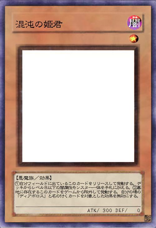 「①自分フィールドに出ているこのカードをリリースして発動する。デッキからレベル8以下の闇属性モンスター一体を手札に加える。②墓地に存在するこのカードをゲームから除外して発動する。自分の場の「ディアボロス」と名の付くカードを対象とした効果を無効にする。」(2019-01-10 14:10)