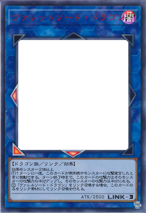 | 効果モンスター2体以上 ①1ターンに一度、このカードが表側表示モンスターに攻撃宣言したときに発動できる。ターン終了時まで、このカードの攻撃力はそのモンスターの攻撃力の半分アップし、そのモンスターの攻撃力は半分になる。②「ヴァレルソード・ドラゴン」をリンク召喚する場合、このカードのみをリンク素材にしてリンク召喚を行える。 | |||