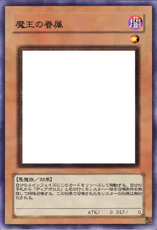 | 自分のメインフェイズにこのカードをリリースして発動する。自分の手札から「ディアボロス」と名の付くモンスター一体を召喚条件を無視して特殊召喚する。この効果で召喚されたモンスターの効果は無効化される。 | |||