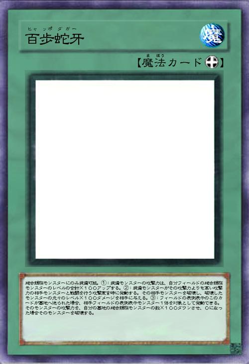 「百歩蛇の牙…。その毒が塗り込まれた短剣はさぞや強力な武器となり得ることでしょう。余命が百歩になってしまうもの…。カード名的には牙で作られた短剣っぽい感じのそういう…ね?(語彙不足。
