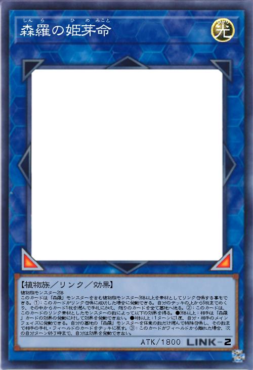 | 植物族モンスター2体 このカードは「森羅」モンスターを含む植物族モンスター3体以上を素材としてリンク召喚する事もできる。①:このカードがリンク召喚に成功した場合に発動できる。自分のデッキの上から5枚までめくり、その中からカード1枚を選んで手札に加え、残りのカードを全て墓地へ送る。②:このカードは、このカードのリンク素材としたモンスターの数によって以下の効果を得る。●3体以上:相手は「森羅」カードの効果の発動に対して効果を発動できない。●4体以上:1ターンに1度、自分・相手のメインフェイズに発動できる。自分の墓地の「森羅」モンスターを任意の数だけ選んで特殊召喚し、その数まで相手の手札・フィールドのカードをデッキに戻す。③:このカードがフィールドから離れた場合、次の自分ターン終了時まで、自分は効果を発動できない。 | |||
