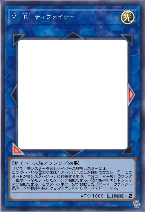 | 「VR」モンスターを含むサイバース族モンスター2体 このカード名の②の効果は1ターンに1度しか使用できない。①:このカードがモンスターゾーンに存在する限り、自分は「V-R」カウンター罠カードをセットしたターンに発動できる。②:相手のエンドフェイズに発動できる。このターン中に自分が発動した「V-R」カウンター罠カードの種類の数だけ自分はデッキからカードをドローする。 | |||