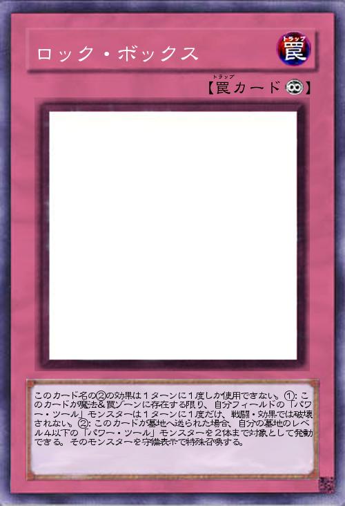 | このカード名の②の効果は1ターンに1度しか使用できない。①:このカードが魔法&罠ゾーンに存在する限り、自分フィールドの「パワー・ツール」モンスターは1ターンに1度だけ、戦闘・効果では破壊されない。②:このカードが墓地へ送られた場合、自分の墓地のレベル4以下の「パワー・ツール」モンスターを2体まで対象として発動できる。そのモンスターを守備表示で特殊召喚する。 | |||