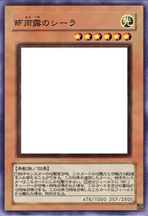 「相手モンスターが攻撃してきたときに攻守を入れ替えて自身にしか攻撃できなくする効果、WFチューナーが召喚されたときに自己再生する効果を持つWF。」(2019-01-31 10:51)