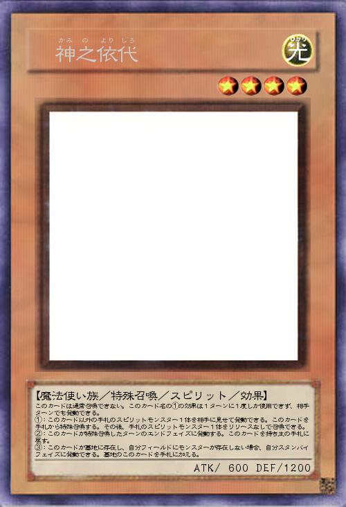 | このカードは通常召喚できない。このカード名の①の効果は1ターンに1度しか使用できず、相手ターンでも発動できる。 ①:このカード以外の手札のスピリットモンスター1体を相手に見せて発動できる。このカードを手札から特殊召喚する。その後、手札のスピリットモンスター1体をリリースなしで召喚できる。 ②:このカードが特殊召喚したターンのエンドフェイズに発動する。このカードを持ち主の手札に戻す。 ③:このカードが墓地に存在し、自分フィールドにモンスターが存在しない場合、自分スタンバイフェイズに発動できる。墓地のこのカードを手札に加える。 | |||