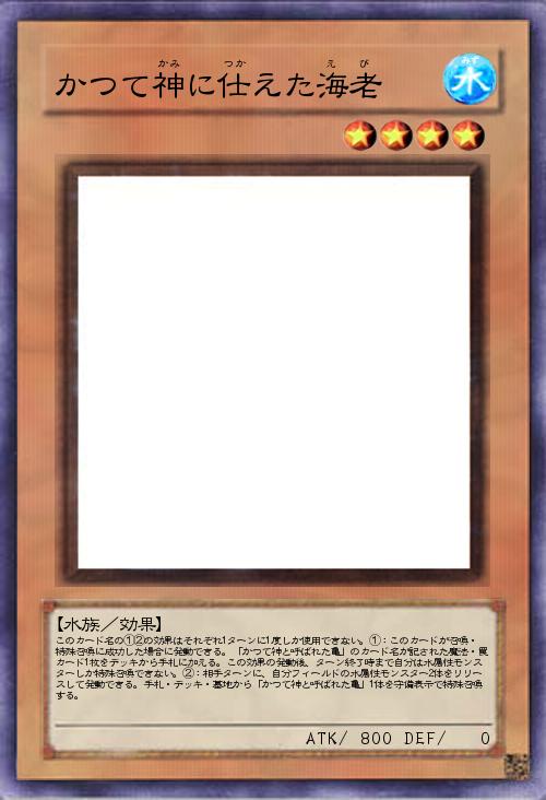 | このカード名の①②の効果はそれぞれ1ターンに1度しか使用できない。①:このカードが召喚・特殊召喚に成功した場合に発動できる。「かつて神と呼ばれた亀」のカード名が記された魔法・罠カード1枚をデッキから手札に加える。この効果の発動後、ターン終了時まで自分は水属性モンスターしか特殊召喚できない。②:相手ターンに、自分フィールドの水属性モンスター2体をリリースして発動できる。手札・デッキ・墓地から「かつて神と呼ばれた亀」1体を守備表示で特殊召喚する。 | |||