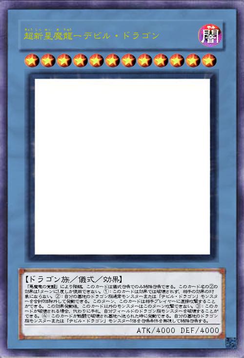 | 「悪魔竜の覚醒」により降臨。このカードは儀式召喚でのみ特殊召喚できる。このカード名の②の効果は1ターンに1度しか使用できない。①:このカードは効果では破壊されず、相手の効果の対象にならない。②:自分の墓地のドラゴン族通常モンスターまたは「デビル・ドラゴン」モンスターを合計5体除外して発動できる。このターン、このカードは相手プレイヤーに直接攻撃することができる。この効果発動後、このカード以外のモンスターはこのターン攻撃できない。③:このカードが破壊される場合、代わりに手札、自分フィールドのドラゴン族モンスターを破壊することができる。④:このカードが戦闘で破壊され墓地へ送られた時に発動できる。自分の墓地のドラゴン族モンスターまたは「デビル・ドラゴン」モンスター1体を召喚条件を無視して特殊召喚する。 | |||