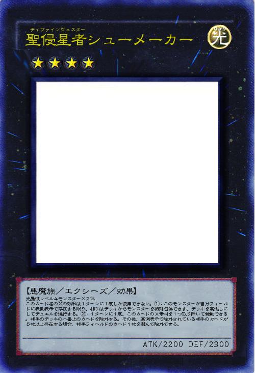 | 光属性レベル4モンスター×2体 このカード名の②の効果は1ターンに1度しか使用できない。①:このモンスターが自分フィールドに表側表示で存在する限り、相手はデッキからモンスターを特殊召喚できず、デッキを裏返しにしてデュエルを進行する。②:1ターンに1度、このカードのX素材を1つ取り除いて発動できる。相手のデッキの一番上のカードを除外する。その後、裏側表示で除外されている相手のカードが5枚以上存在する場合、相手フィールドのカード1枚を選んで除外できる。 | |||