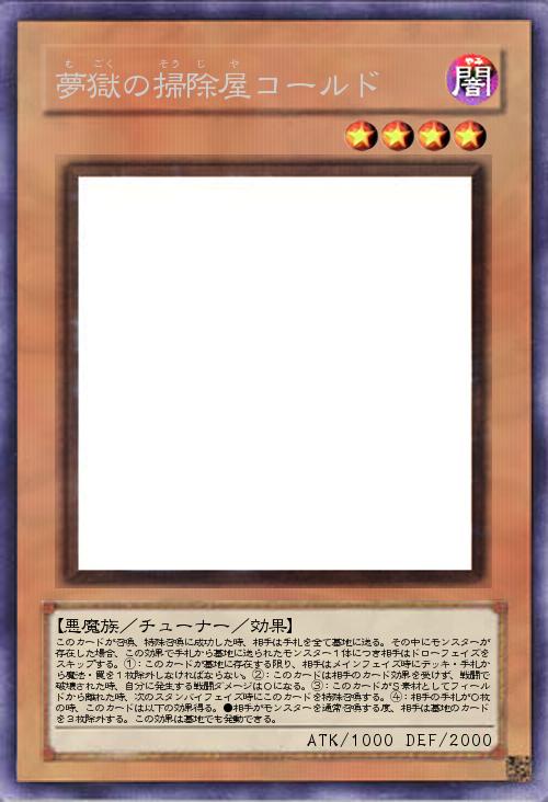 描写だと純粋な清掃員なのに、効果の方は何か別の意味を含んでいるんじゃないかと思うほど凶悪な効果。召喚するだけで全ハンデスし、ドロースキップまで兼ねるという。恐ろしい子!