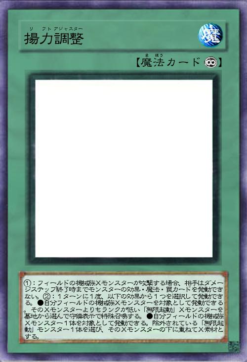 | ①:フィールドの機械族Xモンスターが攻撃する場合、相手はダメージステップ終了時までモンスターの効果・魔法・罠カードを発動できない。②:1ターンに1度、以下の効果から1つを選択して発動できる。●自分フィールドの機械族Xモンスターを対象として発動できる。そのXモンスターよりもランクが低い「無限起動」Xモンスターを墓地から選んで守備表示で特殊召喚する。●自分フィールドの機械族Xモンスター1体を対象として発動できる。除外されている「無限起動」モンスター1体を選び、そのXモンスターの下に重ねてX素材とする。 | |||