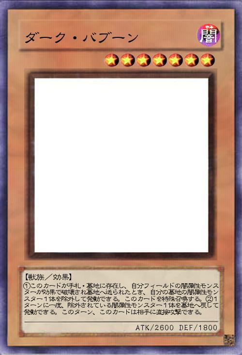 「ダークモンスター化したグリーン・バブーン。こちらはライフではなく自分の墓地の闇属性モンスターをコストにして特殊召喚するタイプ。除外されている闇属性モンスターを墓地の戻すことでダイレクトアタックできるようになります。」(2019-03-06 22:41)