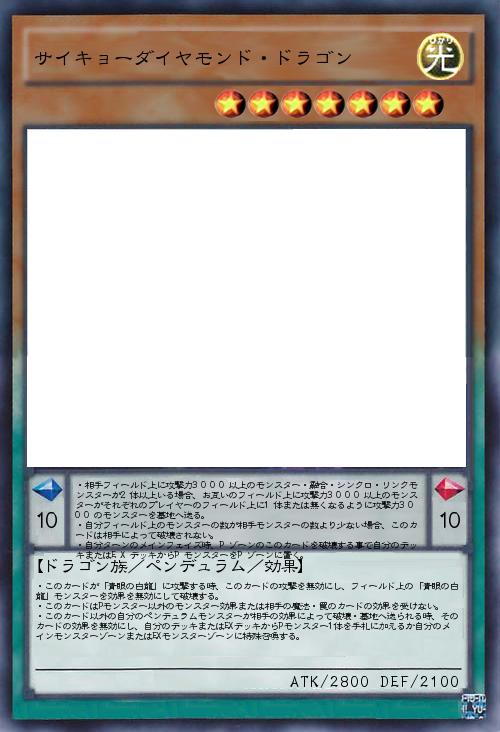 「サイキョーカテゴリにも入ってます。原作のダイヤモンド・ドラゴンが可愛そうだったのでペンデュラムモンスター化。これでもかというほど凶悪な効果を詰め込みましたwwアドバイスお願いします!」(2019-03-09 20:38)