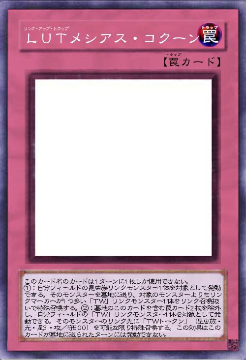 | このカード名のカードは1ターンに1枚しか使用できない。 ①:自分フィールドの昆虫族リンクモンスター1体を対象として発動できる。そのモンスターを墓地に送り、対象のモンスターよりもリンクマーカーが1つ多い「TW」リンクモンスター1体をリンク召喚扱いで特殊召喚する。②:墓地のこのカードを含む罠カード2枚を除外し、自分フィールドの「TW」リンクモンスター1体を対象として発動できる。そのモンスターのリンク先に「TWトークン」(昆虫族・光・星3・攻/守500)を可能な限り特殊召喚する。この効果はこのカードが墓地に送られたターンには発動できない。 | |||