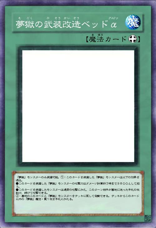 | 「夢獄」モンスターのみ装備可能。①:このカードを装備した「夢獄」モンスターは以下の効果を得る。 ●このカードを装備した「夢獄」モンスターの攻撃力はダメージ計算終了時まで3500として扱う。 ●このカードを装備したモンスターは通常の攻撃に加え、このターン相手が墓地に送った手札の枚数分、続けて攻撃できる。 ②:墓地のこのカードと「夢獄」モンスターをデッキに戻して発動できる。デッキからこのカード以外の「夢獄」魔法・罠1枚を手札に加える。 | |||