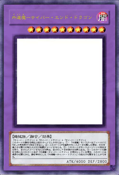 | 「サイバー・ドラゴン」+「サイバー・ドラゴン」+「サイバー・ドラゴン」 このカードの融合召喚は上記のカードでしか行えない。①:「外道魔」モンスターはフィールドに1体しか表側表示で存在できない。②:このカードが守備表示モンスターを攻撃した場合、その守備力を攻撃力が超えた分だけ戦闘ダメージを与える。③:このカードがモンスターゾーンに存在する限り、自分にダメージを与える効果は、自分のLPを回復する効果になる。④:このカードの融合召喚に元々のカード名が「外道魔ーサイバー・ドラゴン」を素材としている場合、このカードは通常の攻撃に加え、融合素材にした「外道魔ーサイバー・ドラゴン」の数だけ攻撃することができる。 | |||