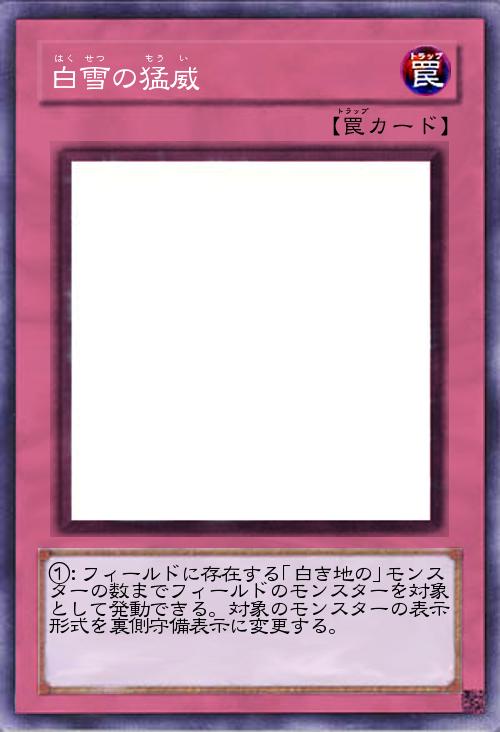 | ①:フィールドに存在する「白き地の」モンスターの数までフィールドのモンスターを対象として発動できる。対象のモンスターの表示形式を裏側守備表示に変更する。 | |||