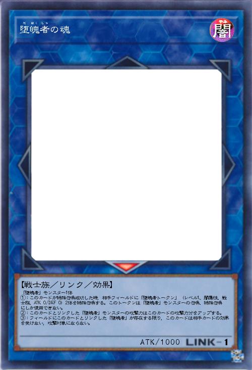 | 「堕魄者」モンスター1体 ①:このカードが特殊召喚成功した時,相手フィールドに「堕魄者トークン」(レベル1、闇属性、戦士族、ATK 0/DEF 0)2体を特殊召喚する。このトークンは「堕魄者」モンスターの召喚、特殊召喚にしか使用できない。 ②:このカードとリンクした「堕魄者」モンスターの攻撃力はこのカードの攻撃力分をアップする。 ③:フィールドにこのカードとリンクした「堕魄者」が存在する限り,このカードは相手カードの効果を受けない,攻撃対象にならない。 | |||