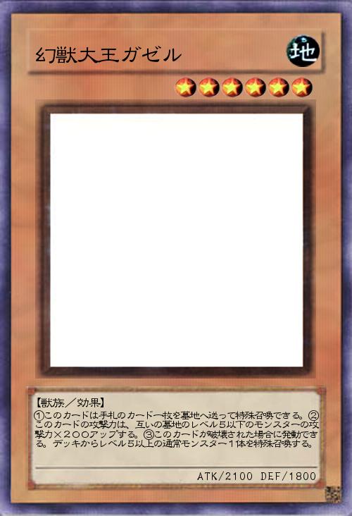 「幻獣王ガゼルのリメイクモンスター。レベルと攻守を有翼幻獣キマイラと同じにしてあります。THEトリッキーと同じ特殊召喚効果に微量ながらも自己強化、破壊されるとレベル5以上の通常モンスターをデッキから特殊召喚します。」(2019-03-16 11:55)