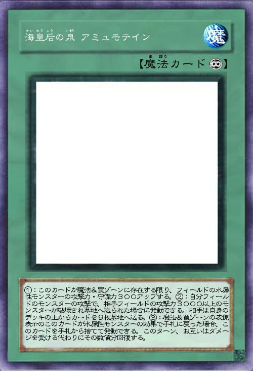 | ①:このカードが魔法&罠ゾーンに存在する限り、フィールドの水属性モンスターの攻撃力・守備力300アップする。②:自分フィールドのモンスターの攻撃で、相手フィールドの攻撃力3000以上のモンスターが破壊され墓地へ送られた場合に発動できる。相手は自身のデッキの上からカードを9枚墓地へ送る。③:魔法&罠ゾーンの表側表示のこのカードが水属性モンスターの効果で手札に戻った場合、このカードを手札から捨てて発動できる。このターン、お互いはダメージを受ける代わりにその数値分回復する。 | |||