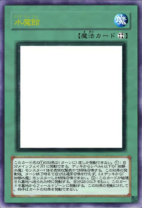 | このカード名の①の効果は1ターンに1度しか発動できない。①:自分メインフェイズ1に発動できる。デッキからレベル4以下の「紺碧水魔」モンスター1体を表側攻撃表示で特殊召喚する。この効果の発動後、ターン終了時まで自分は通常召喚を行えず、EXデッキから「紺碧水魔」モンスターしか特殊召喚できない。②:このカードが破壊され墓地へ送られた時に発動する。自分は500LPを払い、このカードを墓地からフィールドゾーンに発動する。この効果の発動に対して、相手はカードの効果を発動できない。 | |||