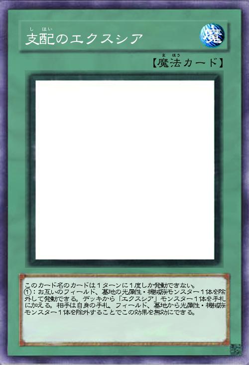 | このカード名のカードは1ターンに1度しか発動できない。 ①:お互いのフィールド、墓地の光属性・機械族モンスター1体を除外して発動できる。デッキから「エクスシア」モンスター1体を手札に加える。相手は自身の手札、フィールド、墓地から光属性・機械族モンスター1体を除外することでこの効果を無効にできる。 | |||