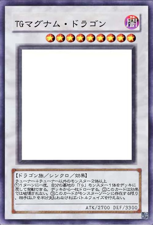 「レベル9のTGシンクロモンスターを作りました。墓地のTGモンスターをデッキに戻しての一枚ドローと効果破壊耐性、相手がバトルする際にライフを支払わせるモンスター。」(2019-03-21 10:53)